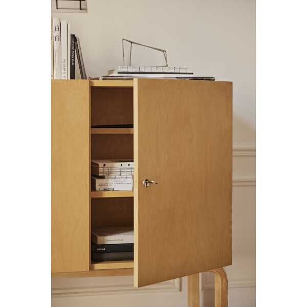 Artek Kaappi 250, tunnettu myös nimellä Cocktailkaappi, on palannut Artekin vakiomallistoon tuomaan ajatonta suomalaista designia sisustukseesi. Muotoilultaan selkeälinjainen kaappi on monipuolinen säilytysratkaisu, joka kätkee sisäänsä niin hienostuneet astiat ja virvokkeet kuin arjen esineetkin. Sen elegantti ulkoasu sulautuu saumattomasti niin olohuoneen kuin ruokailutilan tunnelmaan.