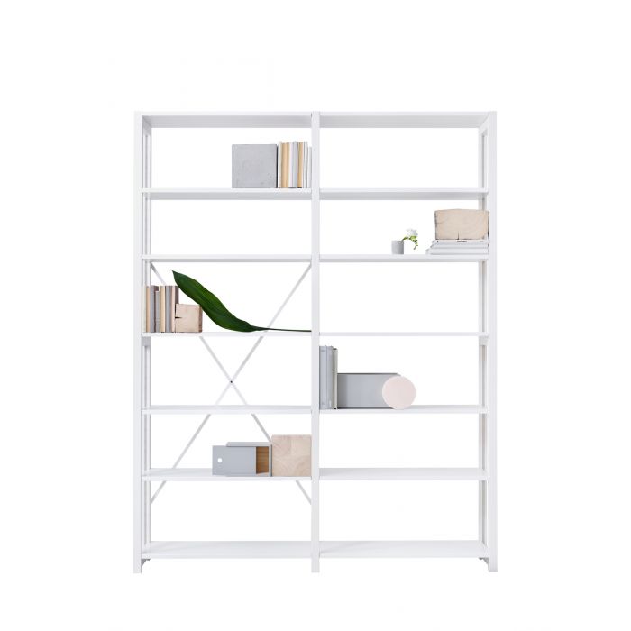 Avonainen, kevyt ilme sulautuu sisustukseen, mutta muuntautuu tarvittaessa: lisää helposti ovia, laatikoita tai jakolevyjä luodaksesi juuri sinun näköisesi kokonaisuuden. Hyllyä voi jatkaa lisäosilla tai jakaa kahdeksi erilliseksi kirjahyllyksi. Eettinen valinta, joka kestää aikaa ja muuntelun!