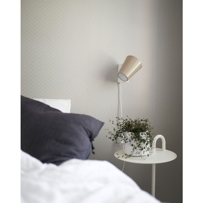 Liekki kytketään pistorasiaan ja valaisimessa on katkaisin. Valmistettu alumiinista