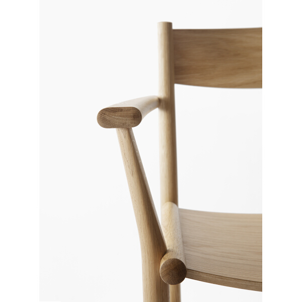 Huolellisen suunnittelun tuloksena syntyneet kaarevat käsinojat eivät ainoastaan lisää istuinmukavuutta, vaan tuovat tilaan ainutlaatuista luonnetta. Samaan aikaan tuolin mittasuhteet on säilytetty ennallaan, mikä takaa sen erinomaisen ergonomian ja istuinmukavuuden, josta alkuperäinen tuoli on saanut paljon kiitosta.