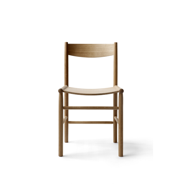 Tuolin klassinen, suoralinjainen runko on valmistettu joko tammesta tai saarnesta, ja voit valita useista eri pintakäsittelyvaihtoehdoista juuri omaan tilaasi sopivan. Tuolin pehmeästi muotoiltu istuin ja selkänoja takaavat erinomaisen istuinmukavuuden. Lisäksi istuin on verhoiltavissa monin eri kangas- tai nahkavaihtoehdoin, jotta voit luoda yksilöllisen ilmeen.