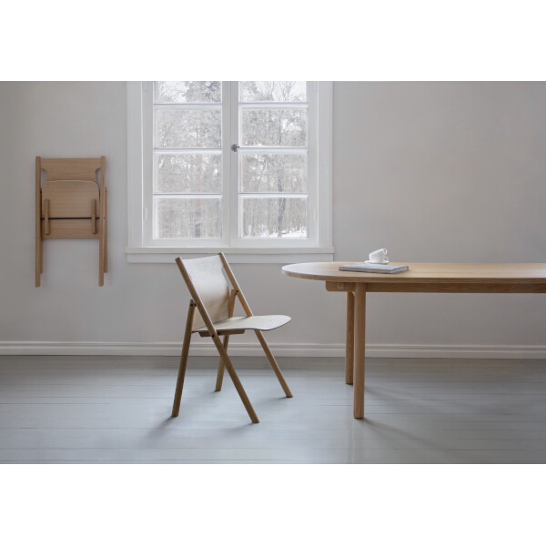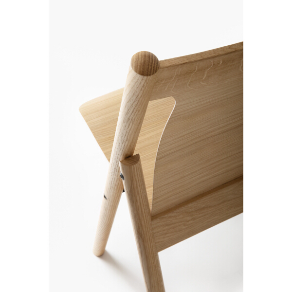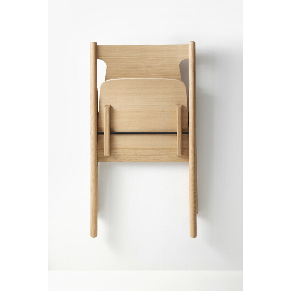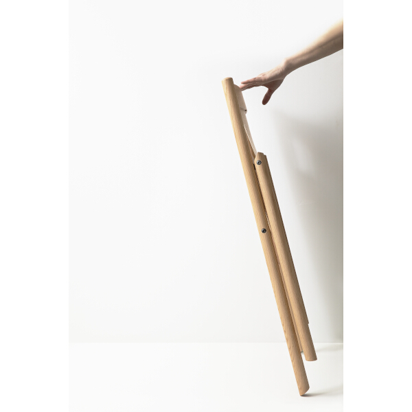 Faneeri-tuolin nerokkuus piilee sen rakenteessa. Selkänoja on valmistettu ohuista, ristikkäislaminoiduista viiluista, jotka toimivat samanaikaisesti sekä jalkojen tukirakenteena että ergonomisena selkänojana. Tuolia avatessa viilut kaareutuvat luonnollisesti, luoden yllättävän mukavan ja joustavan selkänojan. Kun tuoli taitetaan kasaan, se muuttuu litteäksi, jolloin sitä on helppo säilyttää pienessäkin tilassa.