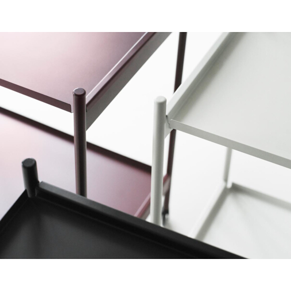 Rul-vaunun minimalistinen muotoilu antaa tilaa sen sisällölle. Käyttömukavuutta lisäävät irrotettavat hyllytasot, jotka muuntuvat helposti tarjottimiksi arjen eri tarpeisiin. Tämä monikäyttöinen vaunu sopii täydellisesti niin baarivaunuksi, sivupöydäksi kuin keittiön lisätasoksikin.
