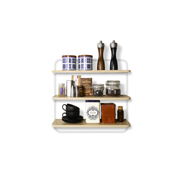 Sopiva-seinähylly on nimensä veroinen: se on täydellinen yhdistelmä käytännöllisyyttä ja skandinaavista raikkautta. Tammiviilutetun hyllylevyn ja valkoisen metallikehyksen liitto luo ajattoman ilmeen, joka sopii saumattomasti keittiöön, eteiseen tai kylpyhuoneeseen. Nerokkaan piilokiinnityksen ansiosta hylly tuntuu leijuvan seinällä, mikä lisää tilan tuntua ja ilmavuutta.